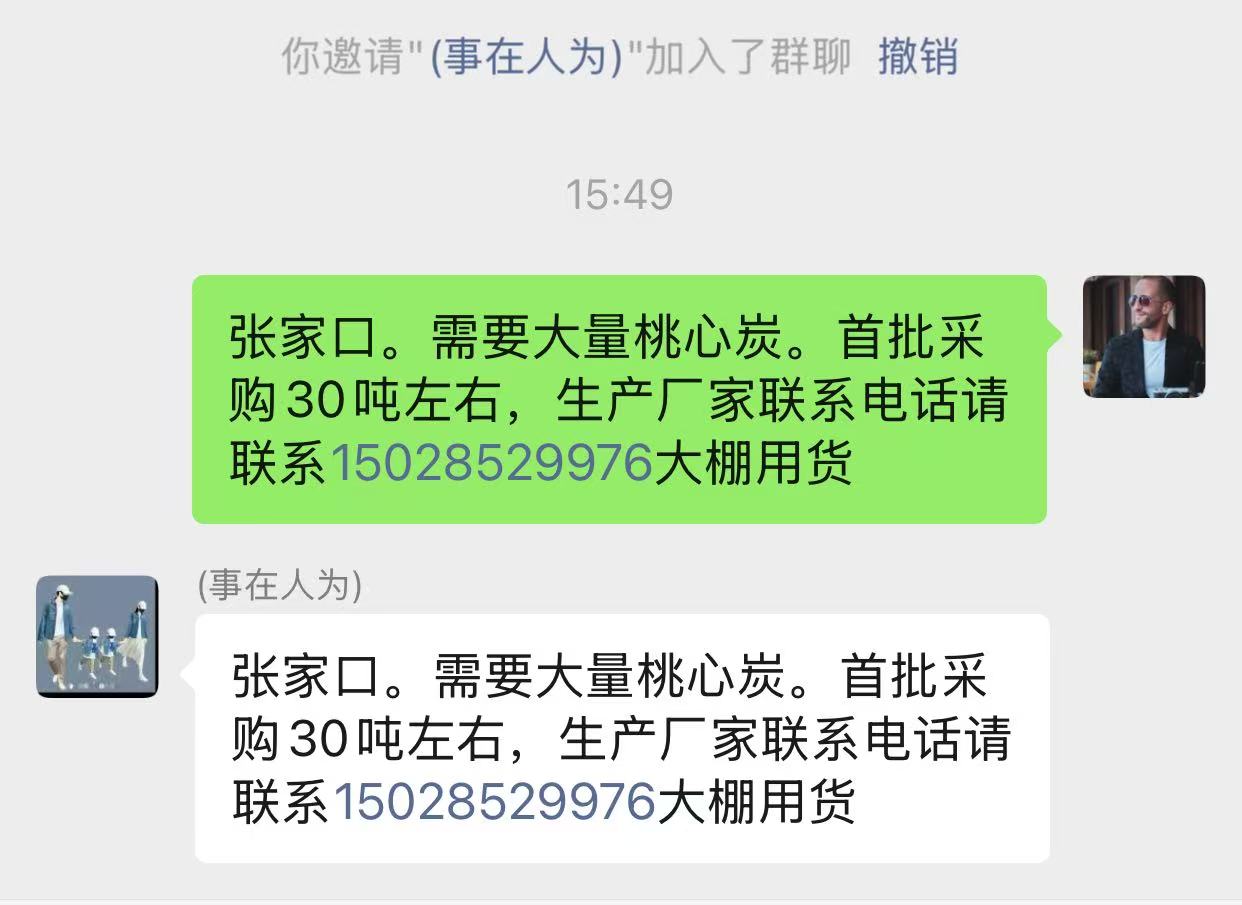 河北张家口采购大量桃心炭首批采购30吨左右大棚用货