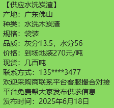 广东佛山大量供应水洗炭渣木炭颗粒